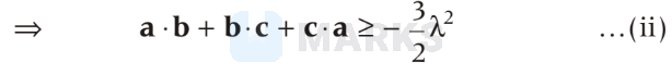 \Rightarrow & {\left[\lambda^2+\lambda^2+\lambda^2+2(\mathbf{a} \cdot \mathbf{b}+\mathbf{b} \cdot \mathbf{c}+\mathbf{c} \cdot \mathbf{a})\right] \geq 0 } \\