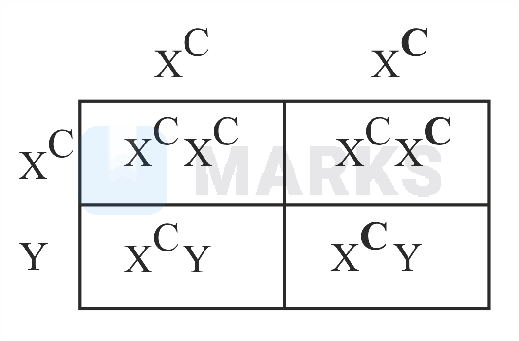 However, in this case, the mother is colour-blind and hence she carries XCXC genotype. Father’s mother is also colour-blind and hence even she will be having the genotype as XCXC, and she will be transferring her XC chromosome to her son and hence, even the son will be colour-blind (XCY). So, by this, we can tell all the X chromosomes are coding for colour-blind gene, and they inherit this gene to all their children, and hence, the chances of their child being colour-blind would be 100%.