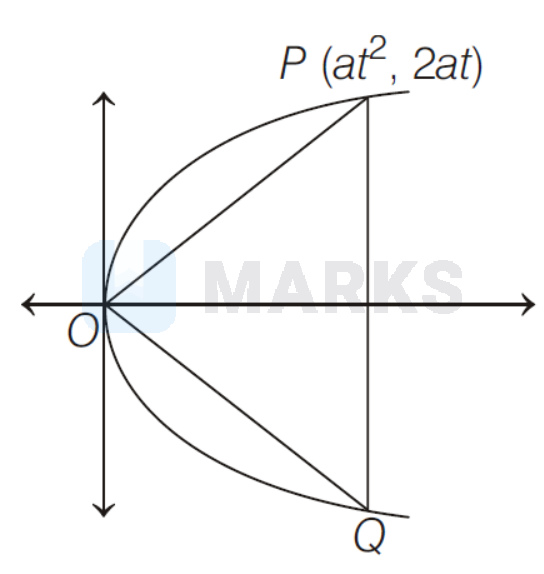 Suppose, it meets the parabola at $Q$ and If $O$ is the vertex of the parabola, then combine equation of $O P$ and $Q Q$ is a homogeneous equation of second degree.