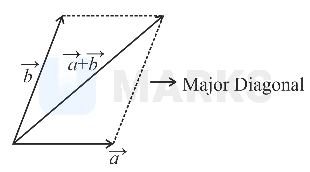 Case-, Angle between them is acute, then the addition is represented major diagonal shown as below,