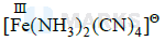 If an iron (III) complex with the formula \(\left[\mathrm{Fe}\left(\mathrm{NH}_3\right)_x(\mathrm{CN})_y\right]^{-}\)has no electron in its \(e_g\) orbital, then the value of \(x+y\) is