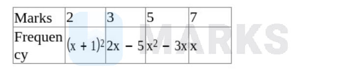 If for some positive $x \hat{I} R$, the frequency distribution of the marks obtained by 20 students in a certain test, is as follows