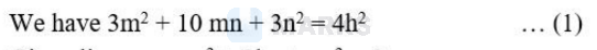 & =\left(\frac{-2 \mathrm{~h}}{\mathrm{n}}\right)^2-\frac{4 \mathrm{~m}}{\mathrm{n}}=\frac{4 \mathrm{~h}^2-4 \mathrm{mn}}{\mathrm{n}^2}=\frac{3 \mathrm{~m}^2+6 \mathrm{mn}+3 \mathrm{n}^2}{\mathrm{n}^2} \ldots[\text { From (1)] } \\