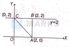 If one side of an isosceles triangle is given by $y=2$ and the base is provided by the points $(2,0)$ and $(0,2)$, then its area (in sq. units) is