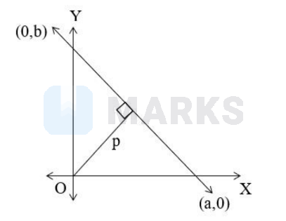 If $\mathrm{p}$ is the length of the perpendicular from origin to the whose intercepts on the axes are $a$ and $b$, then $\frac{1}{a^2}+\frac{1}{b^2}=$
