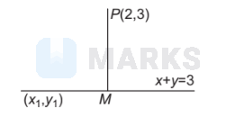 $\begin{aligned} & \therefore \quad \frac{y_1-3}{x_1-2} \times(-1)=1 \\ & \Rightarrow \quad y_1-3=x_1-2 \\ & \end{aligned}$