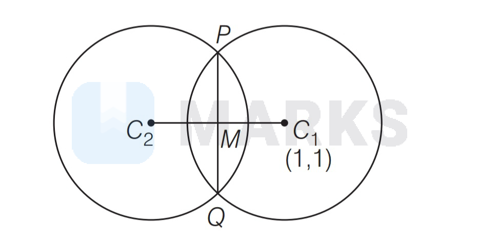 Let $C_{1} M=$ perpendicular distance from centre $C_{1}(1,1)$ to the common chord