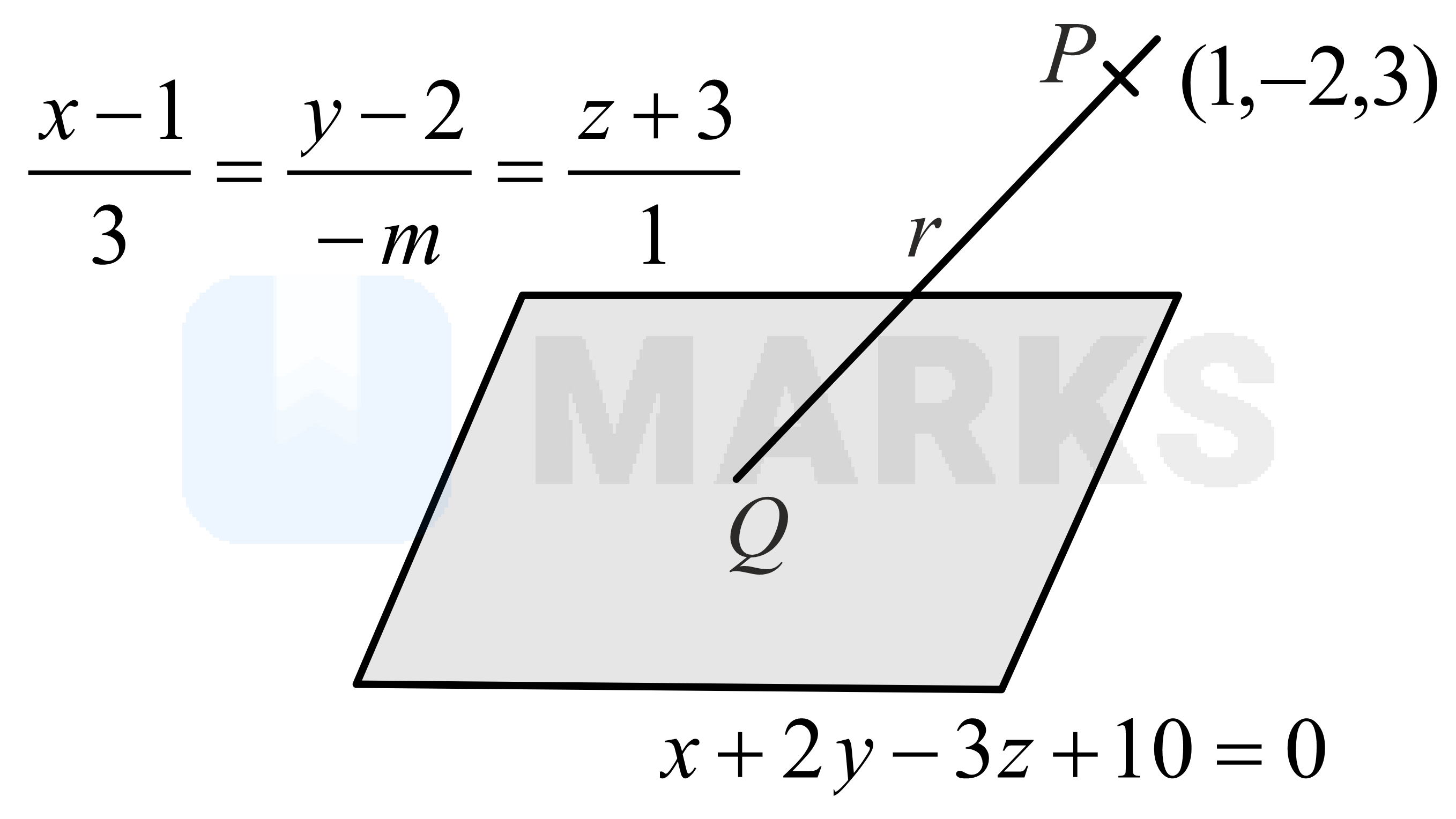 If the distance of the point from the plane measured parallel to the line, is then the value of is equal to _______.