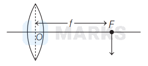 If the image of an object is at the focal point $f$ to the right side of a convex lens, the position of the object on the left of the lens is at