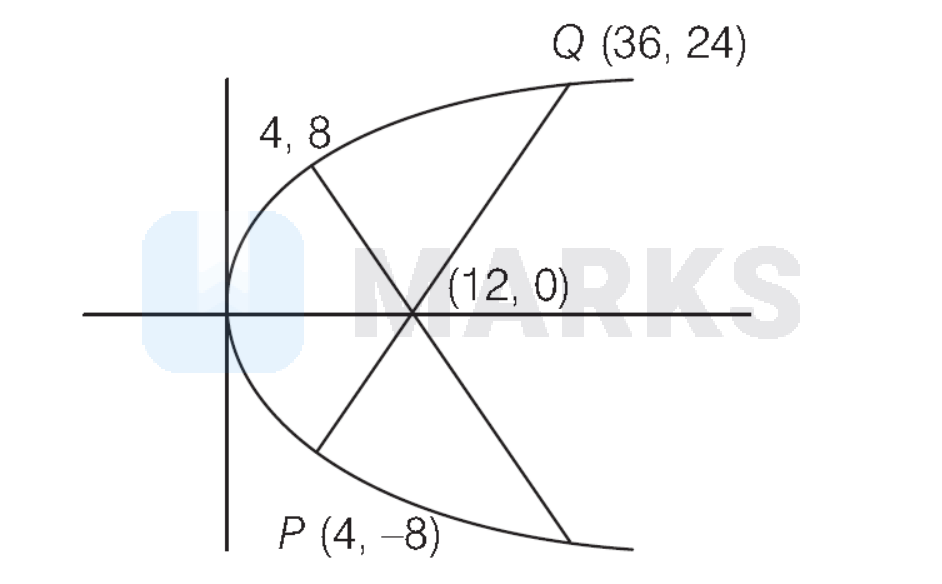 Equation of chord passing through $(12,0)$ and perpendicular of normal is $y=x-12$