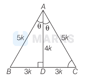Given, sides of $\triangle A B C$ is $5 k, 5 k$ and $6 k$ respectively,