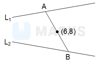 If the segment intercepted between the lines and is bisected at , then the square of the length of segment is