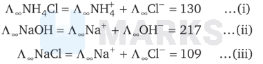 \Lambda_{\infty} \mathrm{NH}_4^{+}+\Lambda_{\infty} \mathrm{OH}^{-} & =130+217-109 \\