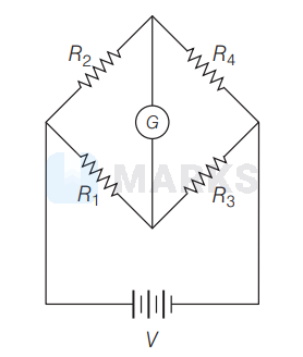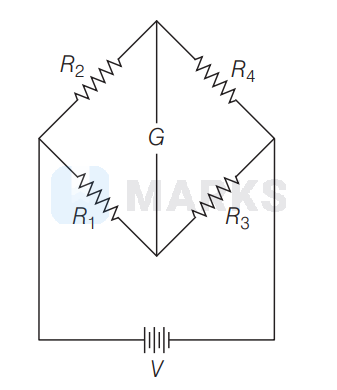 $\frac{R_2}{R_4}=\frac{R_1}{R_3} \quad \text { or } \quad \frac{R_2}{R_1}=\frac{R_4}{R_3}$