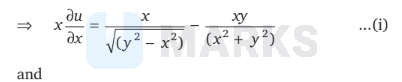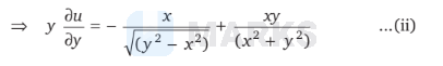 $\begin{array}{r}\frac{\partial u}{\partial y}=\frac{1}{\sqrt{\left\{1-\left(\frac{x}{y}\right)^2\right\}}} \cdot\left(-\frac{x}{y^2}\right)+\frac{1}{1+\left(\frac{y}{x}\right)^2} \cdot\left(\frac{1}{x}\right) \\ =-\frac{x}{y \sqrt{\left(y^2-x^2\right)}}+\frac{x}{\left(x^2+y^2\right)}\end{array}$