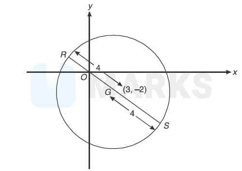 Suppose $R S$ is the normal of the circle passing through origin ' $O$ ' and $G$ is its center $(3,-2)$