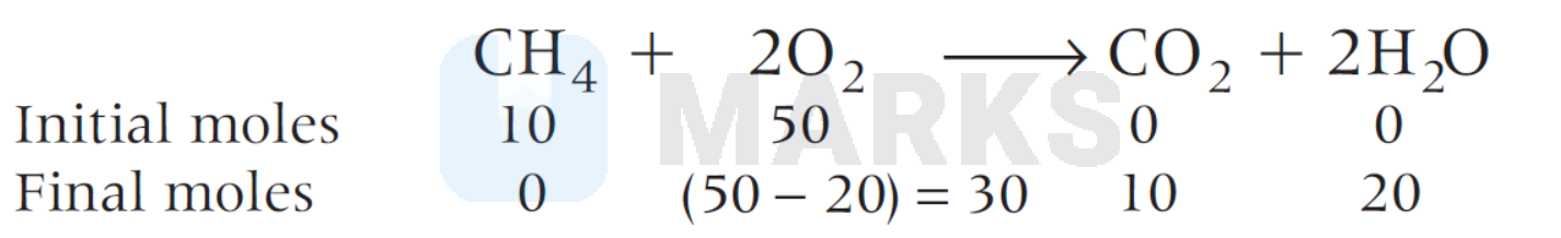 Hence, final moles of $\mathrm{O}_2=30$ moles
