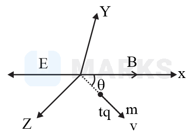 In a certain region, uniform electric field and magnetic field are present in the opposite direction. A particle of mass and of charge enters in this region with a velocity at an angle from the magnetic field. The time after which the speed of the particle would be minimum is equal to