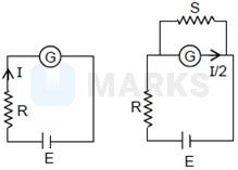 In the second circuit, it is given that the deflection is half that of the previous circuit. So, current flowing through the galvanometer half the first circuit. Hence,