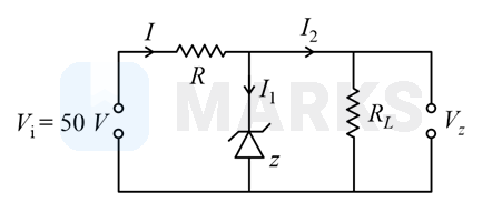 In a given circuit diagram, a zener diode along with a series resistance is connected across a power supply. The minimum value of the resistance required, if the maximum zener current is will be
