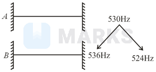 In a guitar, two strings and made of same material are slightly out of tune and produce beats of frequency . When tension in is slightly decreased, the beat frequency increases to . If the frequency of is , the original frequency of will be: