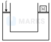 In a hydraulic press, radii of connecting pipes, and are in the ratio . In order to lift a heavy mass on the larger piston, the small piston must be pressed through a minimum force equal to