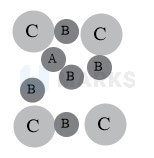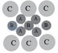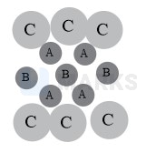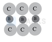 A and B atoms are of appropriate size, so that there is no distortion in the CCP lattice of C atoms. Now, if a plane as shown in the following figure is cut, then the cross section of this plane will look like