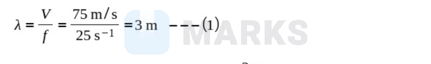 The wavelength is related to velocity and frequency of the wave by following equation: