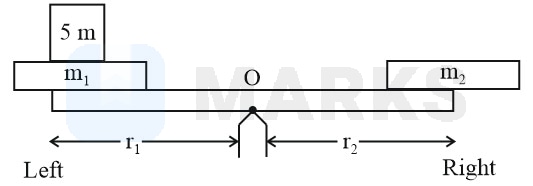 Since balance is achieved, so net torque about should be zero.So, left arm is shorter than the right arm.
