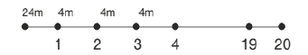In a potato race 20 potatoes are placed in a line at intervals of $4 \mathrm{~m}$ with the first potato $24 \mathrm{~m}$ from the starting point. A contestant is required to bring the potatoes back to the starting place one at a time. How far would he run in bringing back all the potatoes?