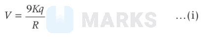 $V=K \frac{q}{R}+K \frac{q}{R}+\ldots .9 \text { times }$