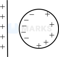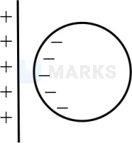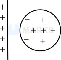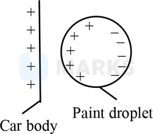 In a system used for spraying cars, a car body is positively charged. Neutral droplets of paint are then attracted to the car because the positive car body induces a charge on the droplets of paint. Which diagram best shows the charge pattern?