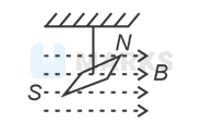 In a uniform magnetic field of 0.049 T , a magnetic needle performs 20 complete oscillations in 5 seconds as shown. The moment of inertia of the needle is $9.8 \times 10^{-6} \mathrm{~kg} \mathrm{~m}^2$. If the magnitude of magnetic moment of the needle is $x \times 10^{-5} \mathrm{Am}^2$, then the value of ' $x$ ' is :