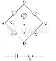 In a Wheatstone bridge (see fig.), Resistances $P$ and $Q$ are approximatelyequal. When $R=400 \Omega$, the bridge is balanced. On interchanging $\mathrm{P}$ and $\mathrm{Q}$, the value of $\mathrm{R},$ for balance, is $405 \Omega$. The value of $Y$ is close to