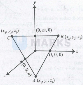 So, the coordinate of $\mathrm{A} \equiv(l, m,-n), B \equiv(l,-m, n)$ and $C \equiv(-l, m, n)$
