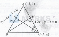 $M=$ Mid point of $A C=\left(\frac{-3+h}{2}, \frac{1+k}{2}\right)$