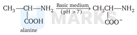 In alkaline medium, alanine exists as anion.