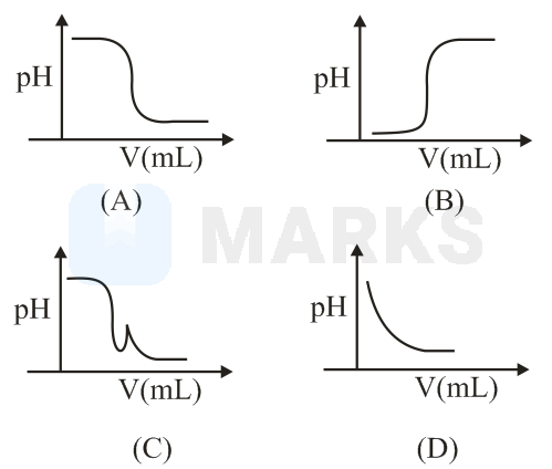 In an acid-base titration, solution was added to the solution of unknown strength. Which of the following correctly shown the change of of the titration mixture in this experiment?