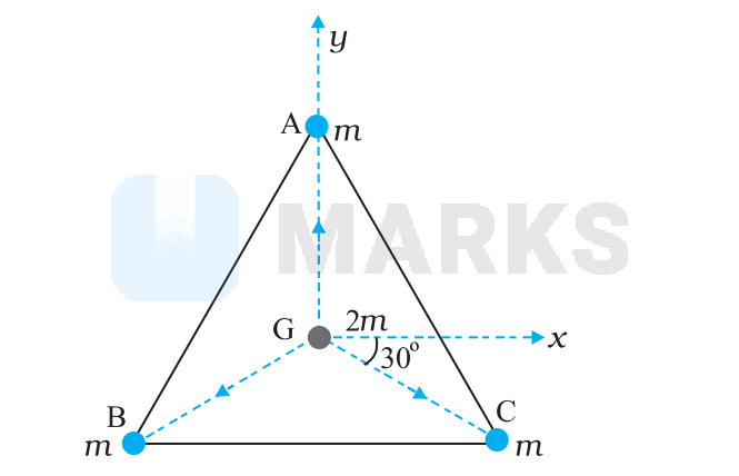 In an equilateral triangle ABC, three equal masses of m kg each are fixed at its vertices. If the mass at vertex A is doubled, what will be the effect on the gravitational force between the masses?(Take AG = BG = CG = 1 m )