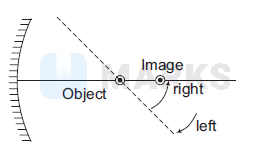 In an experiment to determine the focal length $(f)$ of a concave mirror by the $u-v$ method, a student places the object pin $A$ on the principal axis at a distance $x$ from the pole $P$. The student looks at the pin and its inverted image from a distance keeping his/her eye in line with PA. When the student shifts his/her eye towards left, the image appears to the right of the object pin. Then