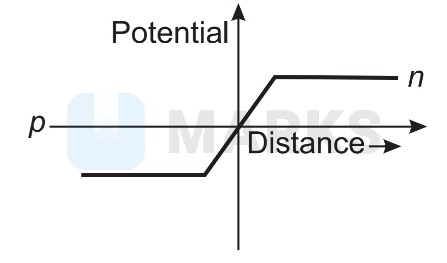 Graph between potential and distance in a junction diode is given by