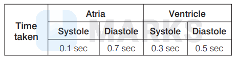 Cardiac cycle is the event during, which one heartbeat or one cycle of contraction (systole) and relaxation (diastole) of cardiac muscle occurs. A cardiac cycle consists of systole and diastole of atria and systole and diastole of ventricles. The time of cardiac cycle is in reverse ratio of the rate of heartbeat. In man, the heart rate is about 72 times $/ \mathrm{min}$, therefore time of a cardiac cycle is $60 / 72=0.8 \mathrm{sec}$ approx .