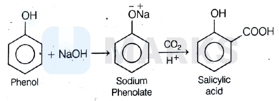 In the Kolbe's reaction the reacting substances are sodium phenolate and $\mathrm{CO}_2$. The reaction involve are as follows