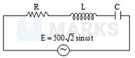 In series circuit, the root mean square voltage across the resistor and inductor are respectively and . If the equation for the applied voltage is , then the peak voltage across the capacitor is