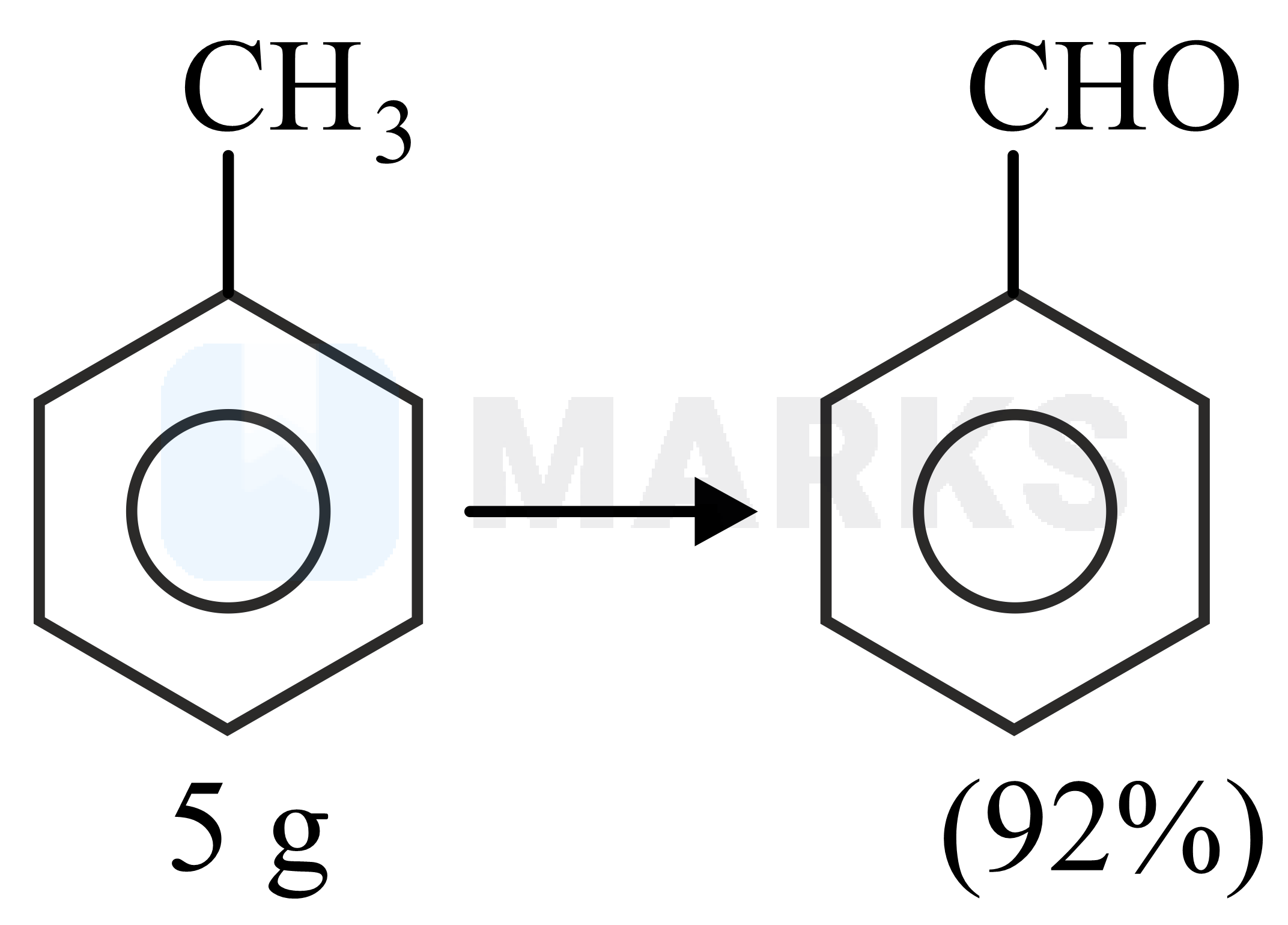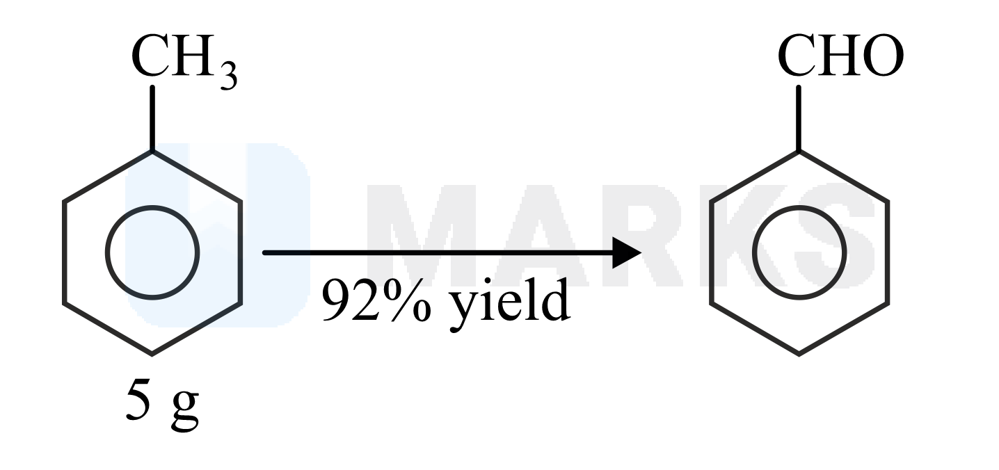 In the above reaction, of toluene is converted into benzaldehyde with yield. The amount of benzaldehyde produced is____