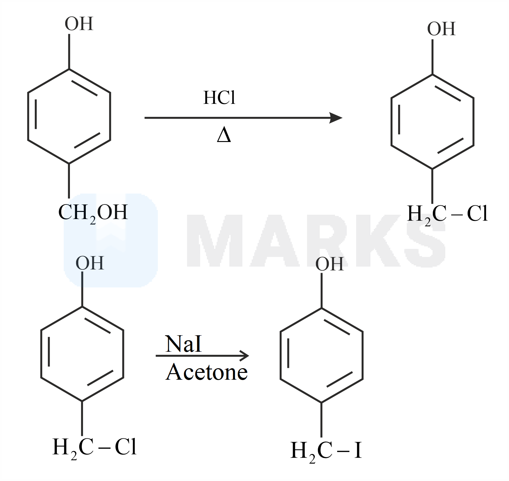 Alcohols are more reactive than phenol towards the reaction with hydrogen chloride. The preparation of alkyl iodide from alkyl bromide or chloride with potassium or sodium iodide in acetone is generally known as the Finkelstein reaction.