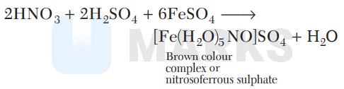 The brown ring is due to the formation of a brown complex between nitric oxide and $\mathrm{Fe}^{2+}$ ions.