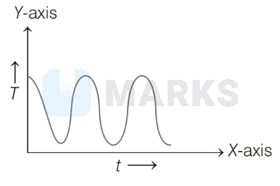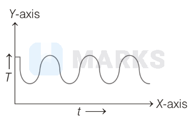 In the case of a simple pendulum executing SHM at $t=0$, the bob is not at the mean position. The graph drawn between the tension $(T)$ in the string and time $(t)$ is