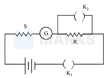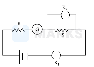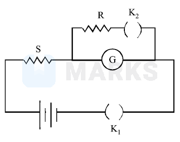 In the circuit diagrams (A, B, C and D) shown below, $\mathrm{R}$ is a high resistance and $\mathrm{S}$ is a resistance of the order of galvanometer resistance G. The correct circuit, corresponding to the half deflection method for finding the resistance and figure of merit of the galvanometer, is the circuit labelled as: