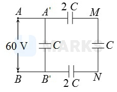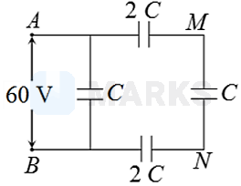 In the circuit shown, a potential difference of is applied across . The potential difference between the points and is